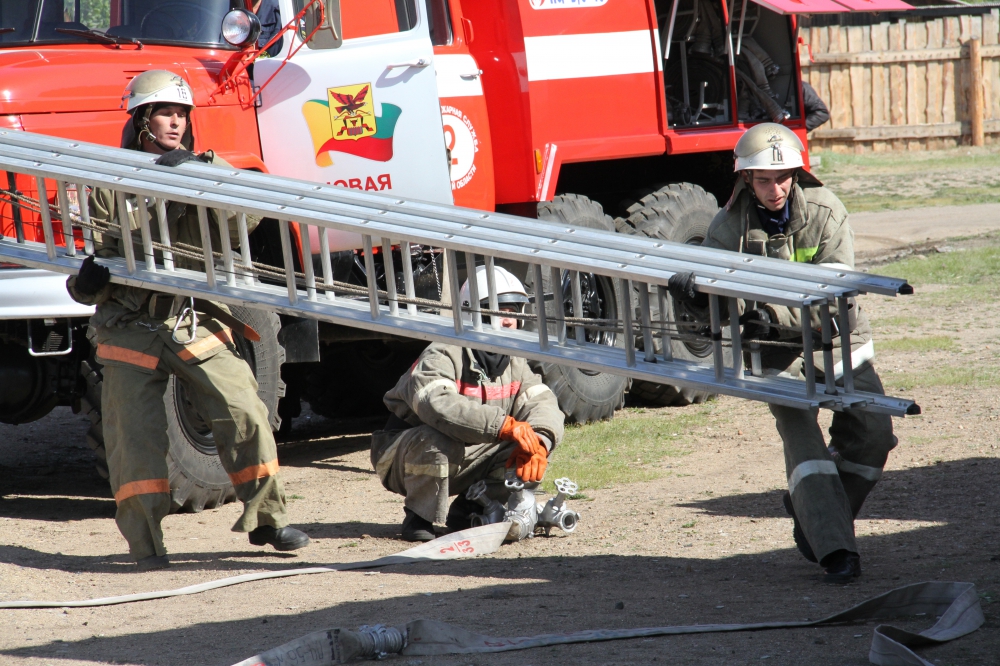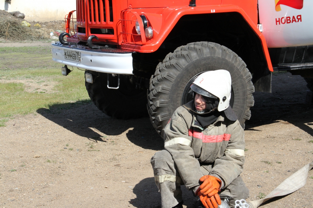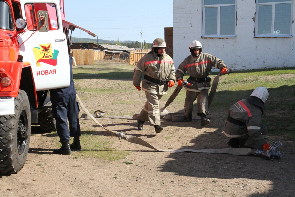 Пожарно-тактические учения на здание средней школы поселка Новокручиниский Читинского района.