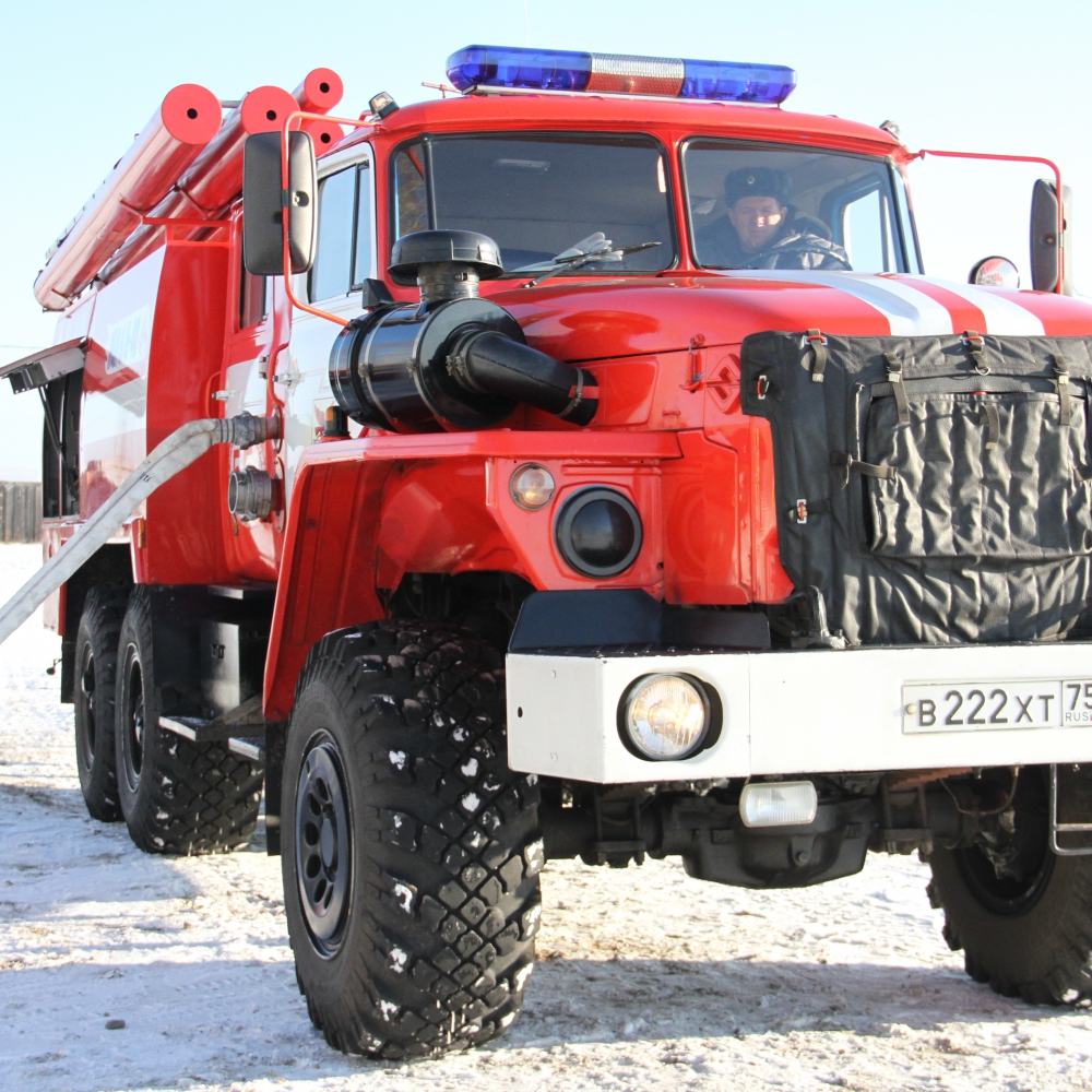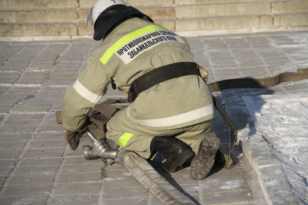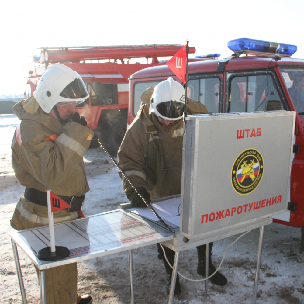 Пожарно-тактические учения по тушению условного пожара в здании средней школы с.Колочное Читинского района